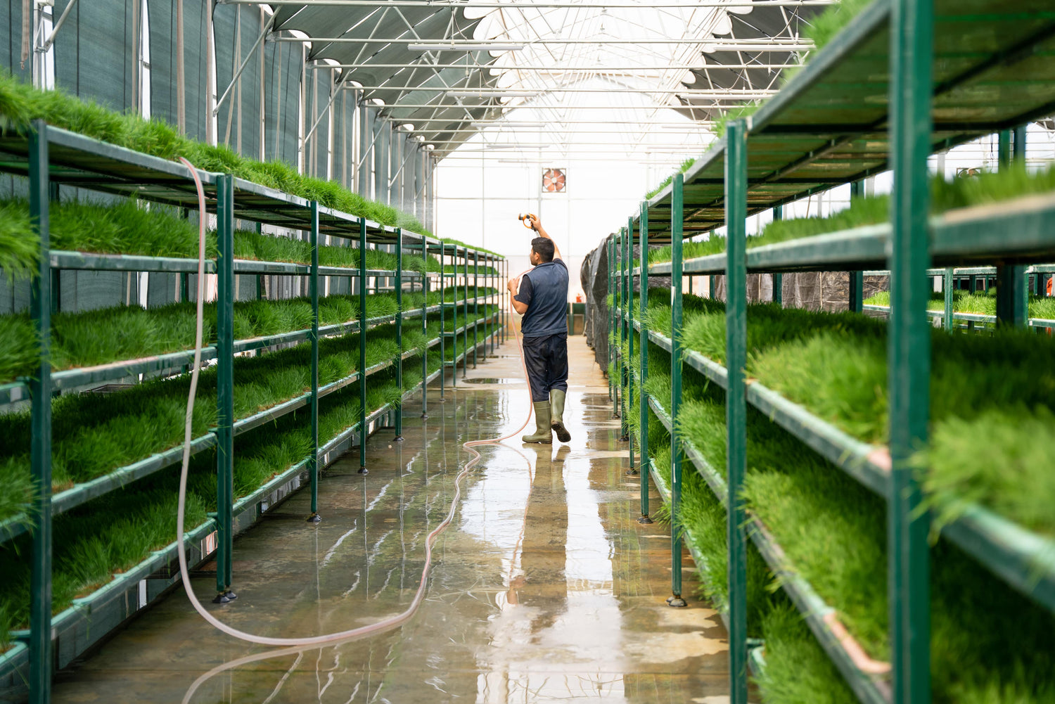 Bitkilerin yetiştirildiği ortamın içerdiklerini besin değerlerine hem miktar hemde kalite olarak doğrudan etkilediğini biliyoruz. Bu yüzden seramızda en verimli çevre şartlarını daha iyi kontrol edebiliyor, ve böcek ilaçları ya da başka zararlı kimyasallar kullanmadan daha organik bir sistem sağlayabiliyoruz. Kontrollü sulama sistemi, hesaplanmış hava sirkülasyonu ve günlük bakımla kaliteli buğday çimi üretiyoruz.